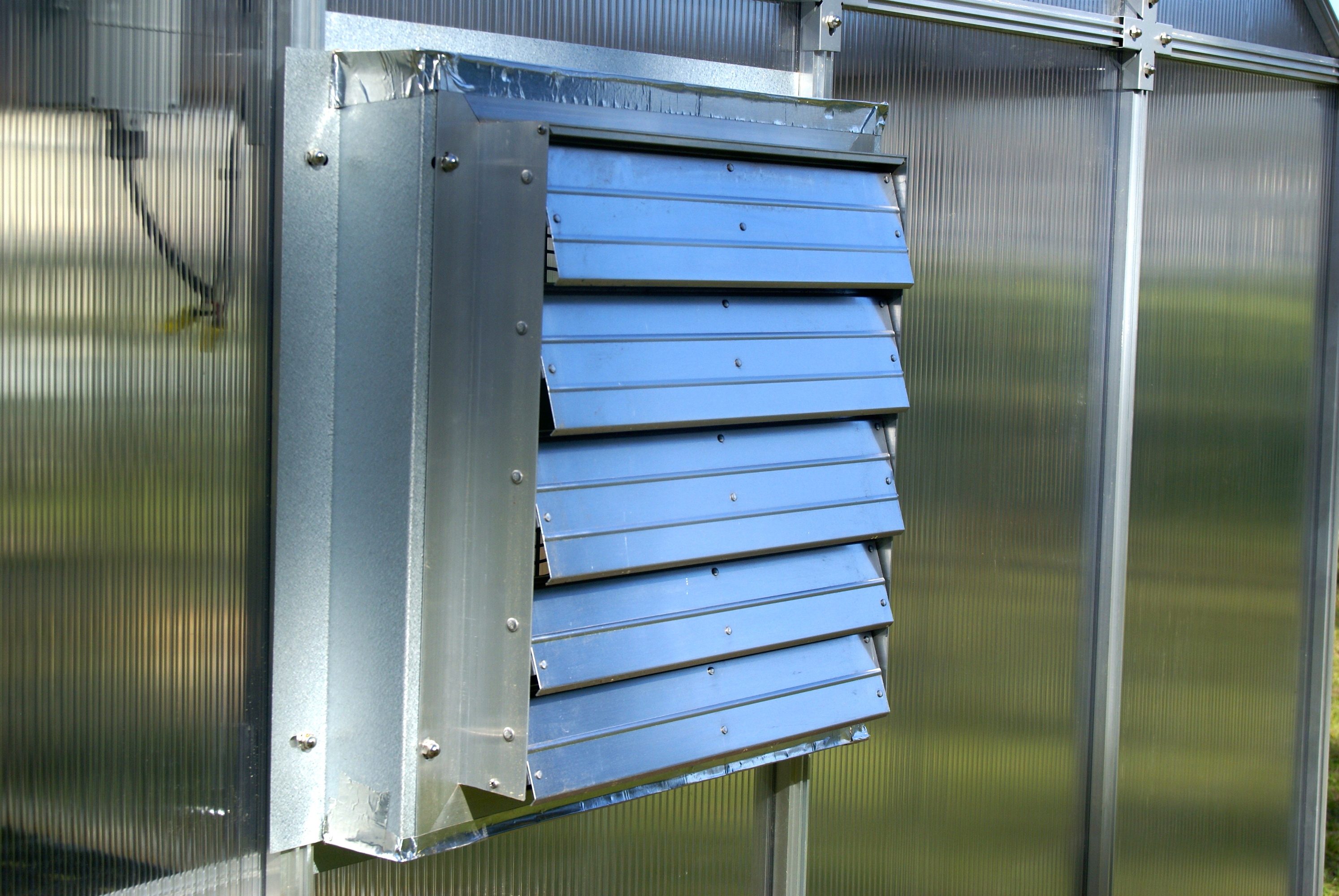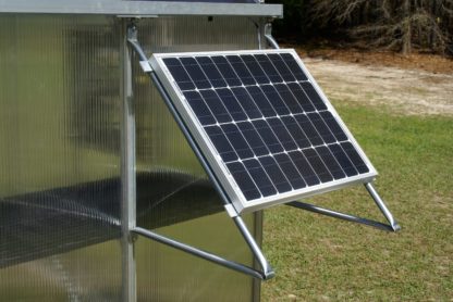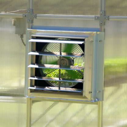 The Monticello Solar Powered Ventilation System is designed to control the temperature in your greenhouse during the hot and cooler months. Most plants will not flower and fruit at temperatures over 85 degrees. To get them to flower temperature control is key. Our commercial fan, exhaust louvers, and commercial thermostat are all made in the USA and our solar panel can product more than 2 times the needed power to operate the fan at 100%, allowing for future options such as lighting and heating. The Monticello Solar Ventilation System allows for off the grid operation, getting power to your greenhouse where you need it. The system is easily retrofitted to other non-Monticello greenhouses as well. The system can easily be set-up to run through a deep cycle marine batter to allow for power on demand , with or without the suns power.