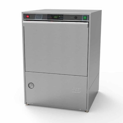 Dishwasher, undercounter, 24″W, high temperature sanitizing with built-in booster heater, configured for 180° final rinse, overflow type operation, approximately (30) racks/hour capacity, auto-fill, Fill, Rinse & Drain Sentry features, auto clean feature, interchangeable upper & lower spray arms, built-in detergent & rinse-aid dispensing pumps, Smart Display digital temperature readout, solid state controls, advanced service diagnostics, counter balanced door, pressure regulating valve, clog-resistant filtering, automatic pumped drain without manual stand pipe, includes (1) flat & (1) peg rack, stainless steel construction, 2.0 kW tank heater, 1 HP wash pump, NSF, cETLus, ENERGY STAR