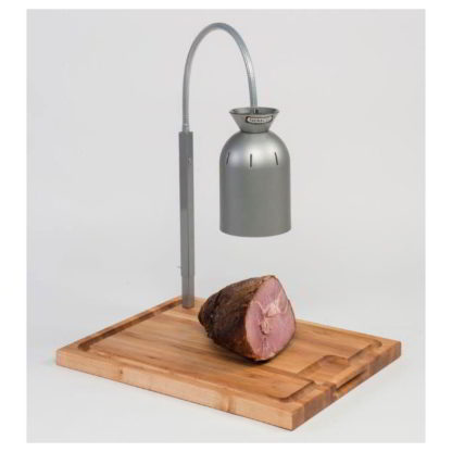 Attractive carving station combines the heat of a 250-watt infrared bulb with a convenient, functional, USDA high density polyethylene cutting board, so you can keep all of your carvable meats at ready-to-eat temperatures. Adjustable, 30-inch high, flexible gooseneck. Wood cutting board detaches for easy cleanup.