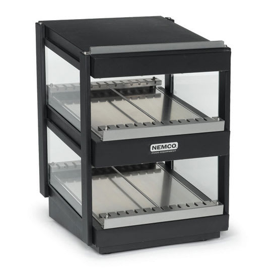 Shelf Merchandiser, 36 x 19-1/2 x 24″, aluminum dissipater plate, horizontal dual shelf, independent heat & light controls per shelf, tempered glass sides, adjustable thermostat control & divider rods, black powder coat exterior, 120V/60/1ph, 15.0 amps, 1800W, NSF, UL, CUL