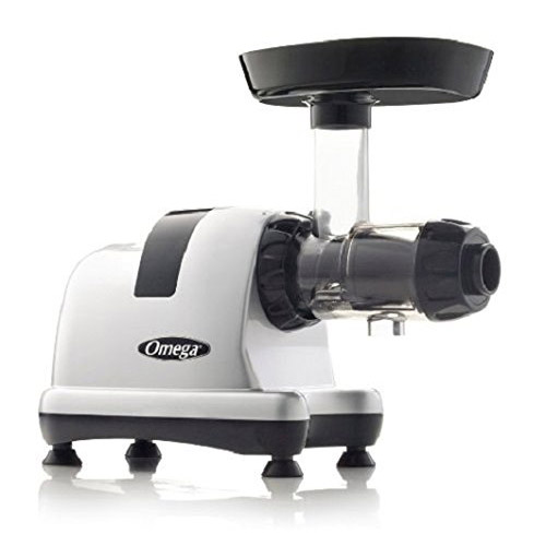 The Omega 8007 Nutrition System Masticating Juicer is equipped with a powerful motor to thoroughly chew up plant fibers to fully extract vitamins, enzymes, and minerals from fruits, vegetables and wheatgrass. The unit’s dual-stage juicing system ensures maximum efficiency, while its low rotation speed of 80 RPMs means no foaming, no clogging, and no heat build-up. Other highlights include a high juice yield with very dry pulp, an automatic pulp-ejection function for continuous juicing, heavy-duty construction, four stabilizing feet, and quiet operation. Easy to assemble, operate, and clean. Nutrition Systems are not just for juicing; they turn nuts into nut butter, extrude pasta, grind coffee and spices, mince herbs and garlic, make baby food, and whip up soy milk in a flash. Use Nutrition Systems to make delicious healthy drinks and snacks everyone will love. The UL- and cUL-approved masticating juice extractor measures 14-1/2 by 6-1/2 by 15-1/2 inches and carries a 15-year warranty.