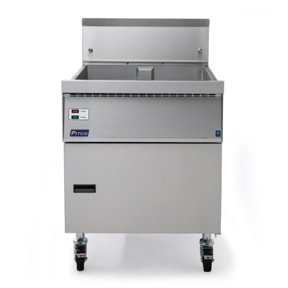 The Pitco FBG24 gas fryer keeps oil hot for long uses, making it a perfect match for commercial kitchens. Constructed with a durable stainless steel design, the fryer features a slew of practical features for best performance. Its high-heat transfer is possible through blower-free burner technology. The fryer’s pilot flame only needs to be ignited once a day, preventing a turn-off, turn-on cycle; instead, it can reheat quickly, and fry cooks can churn out orders one after another. The matchless ignition, which is possible via the solid-state temperature controller, prevents common wear and recovers heat fast. Because it’s a gas-powered fryer, several mechanisms are in place to ensure it works smoothly. An integrated gas control valve protects against high-heat gas and prevents gas flow to the burner if the pilot flame goes out. In total, the valve works as a manual valve, safety pilot valve, gas filter, and pressure regulator. Behind the fryer’s front door, a temperature controller includes an automatic melt cycle, system indicator lights, and a power switch.