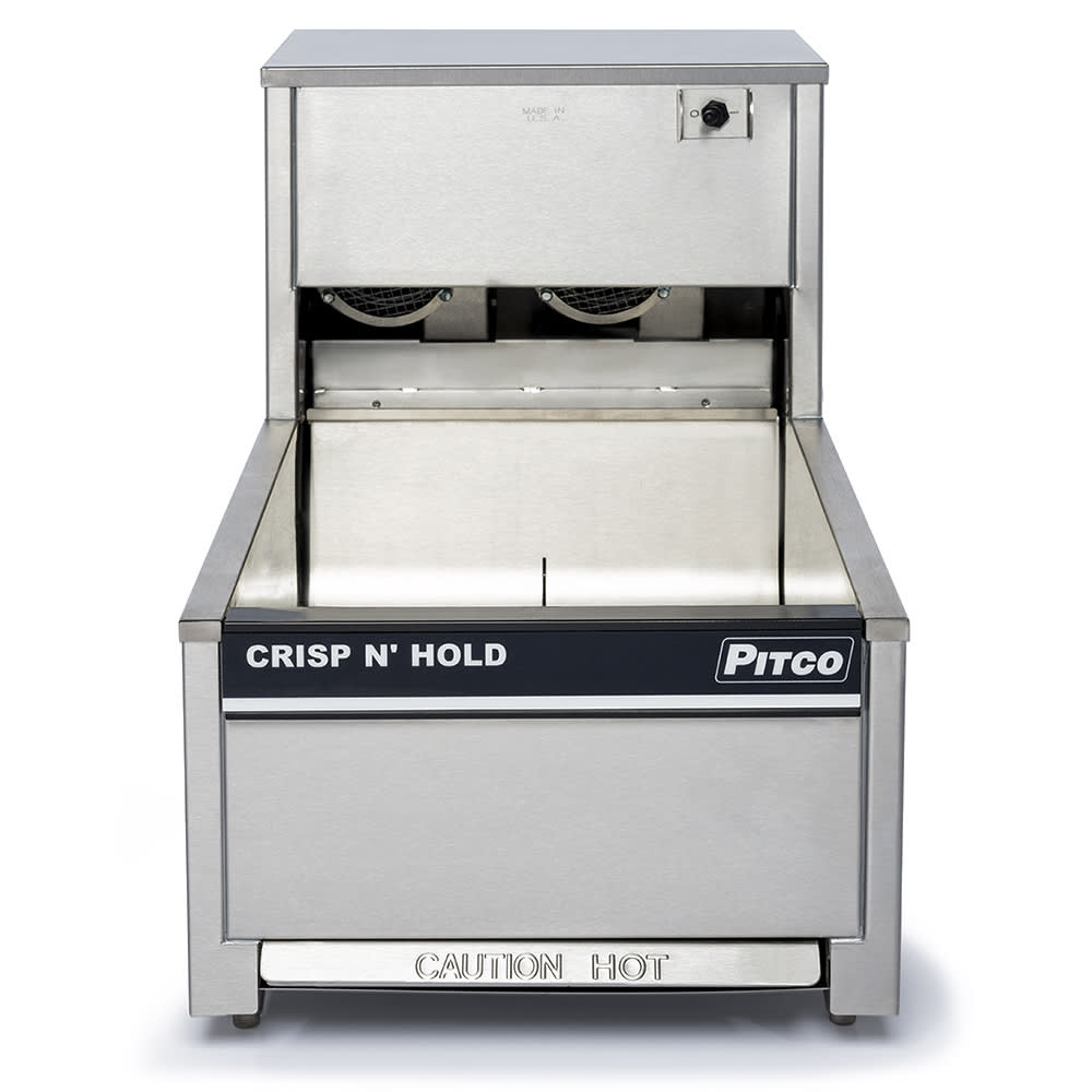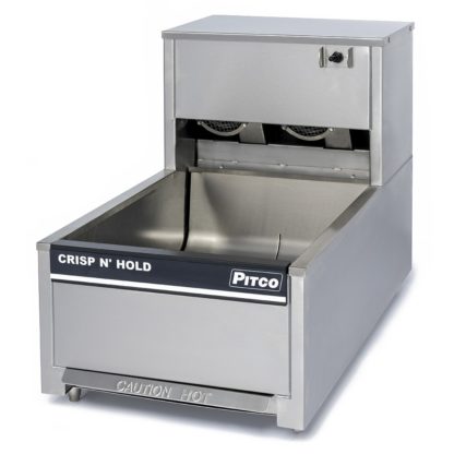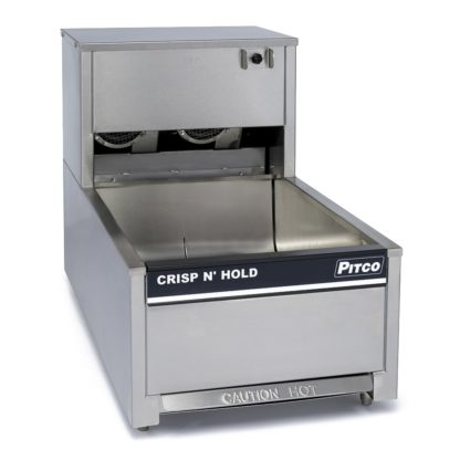 Able to keep fried food hot for extended periods, the Pitco PCC14 Crisp N’ Hold food station is a forced hot air holding system that directs consistent, heated airflow toward foods. In 10 minutes, the station can heat to 190 degrees Fahrenheit, which is good for sporadic fried orders. Filtered, recirculated, and heated air keeps food crisp and free of moisture so it can be served fresh. After frying, products are held and drained in the pan area, where they remain until served. A divider comes with the holding system to create two partitions to separate food as needed.