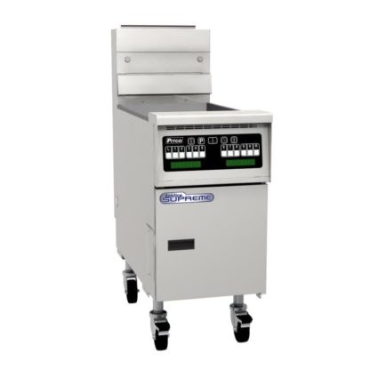 Solstice Supreme High Efficiency Fryer, gas, 75lb oil capacity, full tank, solid state controls, boil out & melt cycle, drain valve interlock, matchless ignition, self-clean burner, downdraft protection, stainless steel tank, front & sides, total 105,000 BTU, ENERGY STAR®, CSA Flame, CSA Star, NSF, CE