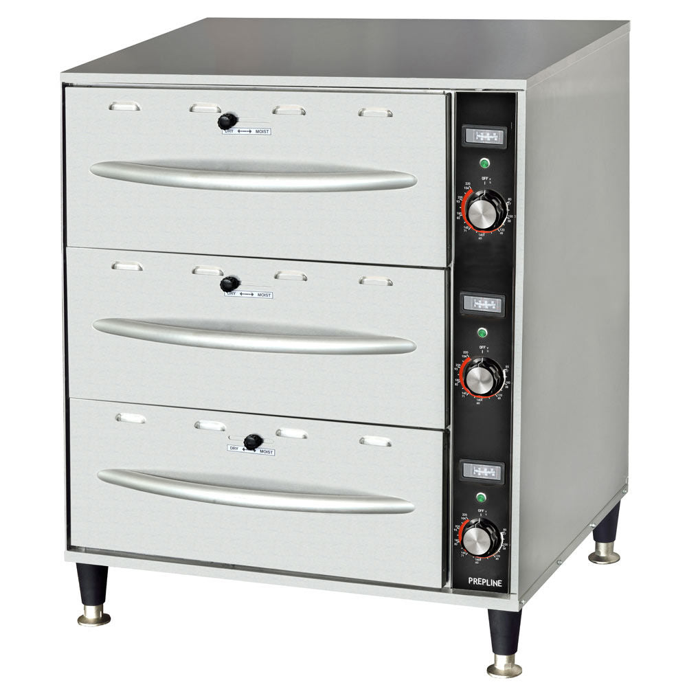 The Prepline DW3 single freestanding stainless steel drawer warmer keeps your food at the precise heats and humidity levels you need for easily accessible storage. Keep your breads, vegetables, meats, and more fresh and delicious until serving! This warmer’s size and mobility makes it a perfect fit for restaurants, cafeterias, dining halls, concession stands, and other foodservice establishments.