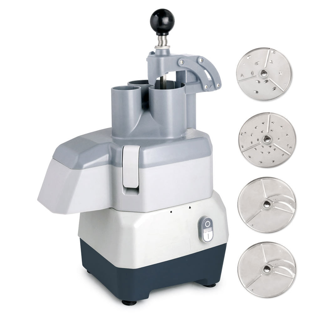 Increasing efficiency and profitability with this Prepline vegetable cutter, continuous feed food processor with 4 discs. Thanks to its powerful 1 hp motor, it is built for high production use, can easily shred, slice and grate your ingredient, greatly shortening prep time and reducing tasks that used to take a significant amount of time to just a mere minutes or even seconds. Standard 115V plug makes set up easy. Just plug it in and turn it on!