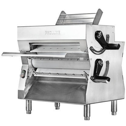 Create delicious house-made pizzas, pitas, pie crusts, and pastries with this Proluxe DPR3000B countertop 20″ two stage dough roller. This versatile countertop dough roller is capable of producing paper-thin dough to create delicious, delicate pastries. It also features an adjustable thickness control dial, so you can easily adjust the settings to accommodate different types of dough and produce consistent results. The double pass design provides a high output, allowing your operator to roll out as many as 250 pieces every hour. Plus, this two-stage unit passes dough through two sets of rollers rather than one, allowing you to achieve your desired thickness in fewer passes to save time! Operating the roller is easy thanks to a simple “On” / “Off” switch. Not only does this unit reduce the amount of physical work needed to create sheets of dough, but it also helps save on time and labor costs to further increase your operation’s efficiency.