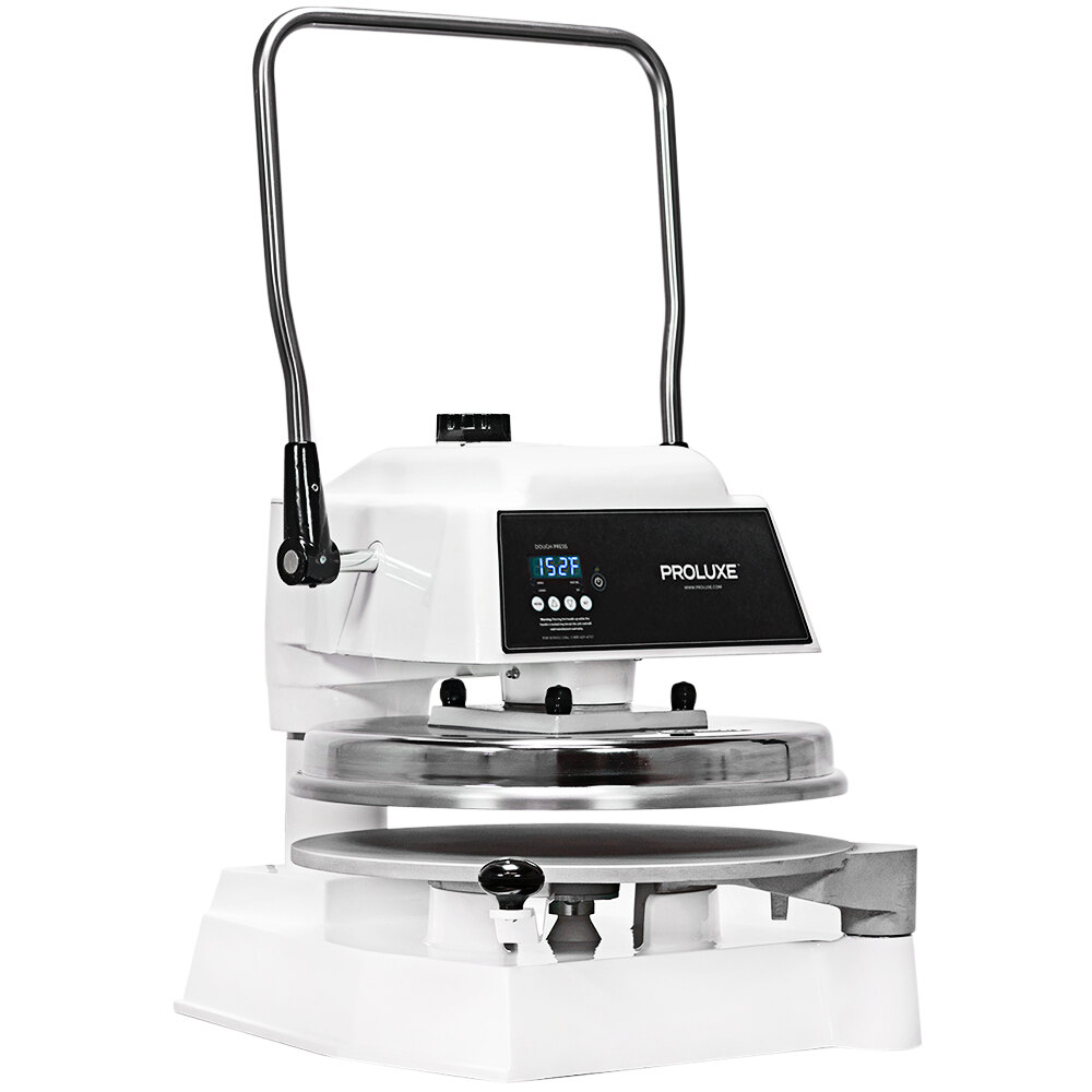 Flatten dough into uniform crusts with the help of this Proluxe DP1100A Endurance X1 18″ manual dough press. This dough press provides the ultimate versatility and convenience to medium volume establishments. A thickness control dial allows you to set how thick the dough should be pressed, so you can press dough for consistently crispy thin crust pizza or pillowy chocolate chip cookies with the touch of a button. Thanks to a flat platen, this machine can press a range of dough sizes, all on one unit. The heated upper platen features embedded heating elements and works quickly and efficiently to press dough to your desired thickness. Plus, this machine reaches up to 450 degrees Fahrenheit to par bake dough and ensure it holds its shape and structure for longer periods of time.