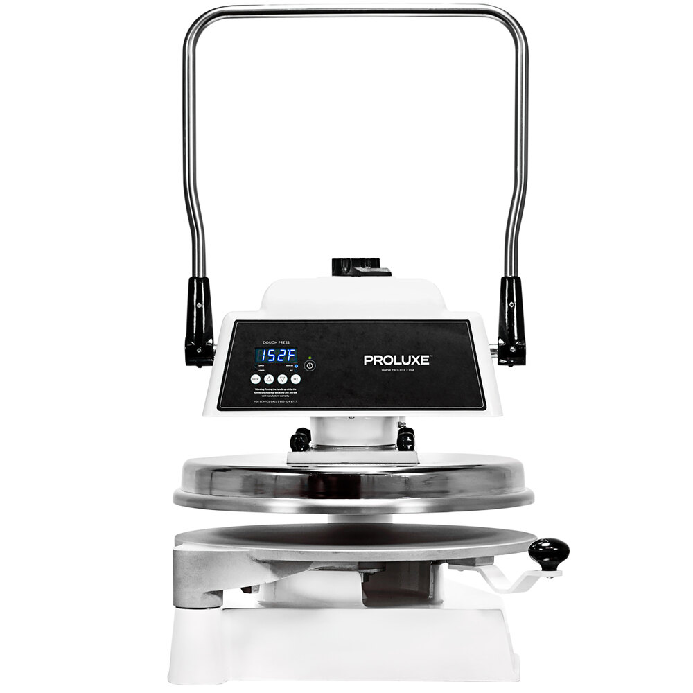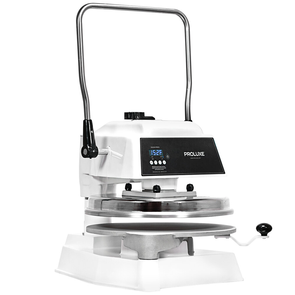Flatten dough into uniform crusts with the help of this Proluxe Endurance X1 DP1100B 18″ manual dough press. This dough press provides the ultimate versatility and convenience to medium volume establishments. A thickness control dial allows you to set how thick the dough should be pressed, so you can press dough for consistently crispy thin crust pizza or pillowy chocolate chip cookies with the touch of a button. Thanks to a flat platen, this machine can press a range of dough sizes, all on one unit. The heated upper platen features embedded heating elements and works quickly and efficiently to press dough to your desired thickness. Plus, this machine reaches up to 450 degrees Fahrenheit to par bake dough and ensure it holds its shape and structure for longer periods of time.