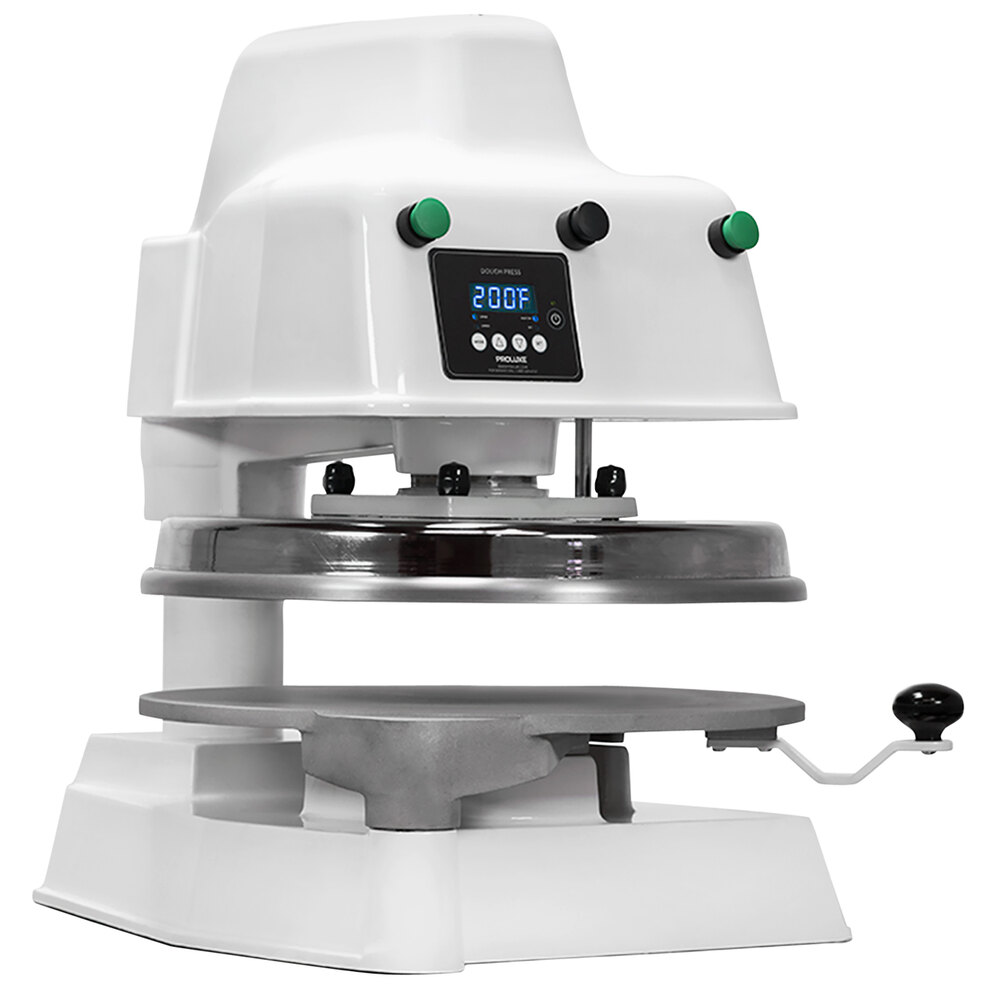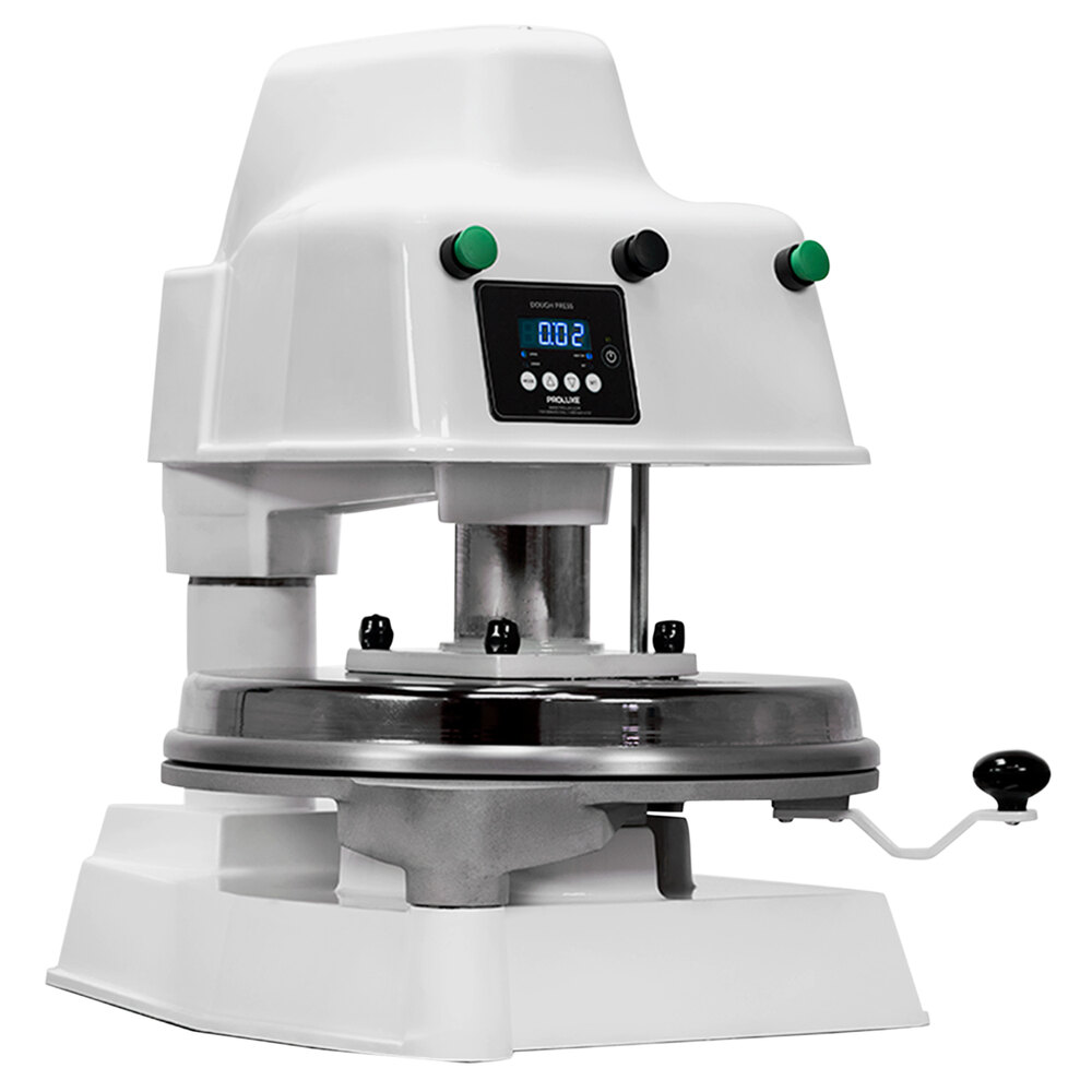 Flatten dough into uniform crusts with the help of this Proluxe Impact X1 DP3300A 18″ automatic dough press. This dough press saves you both time and energy thanks to its automatic design. Its dual heated platens work with this unit’s adjustable temperature control to heat to temperatures up to 450 degrees Fahrenheit and press dough to 8″ or 18″ in diameter. A thickness control dial allows you to set how thick the dough should be pressed, so you can press dough for consistently crispy thin crust pizza or even doughy, stuffed crust. To make pressing easier, this unit features a programmable timer to ensure dough is pressed into perfect crust, so you won’t need to rely on skilled labor to create delicious pizza crusts. The embedded heating elements work quickly and efficiently to press dough to your desired thickness, decreasing your bake time without affecting the dough rise.