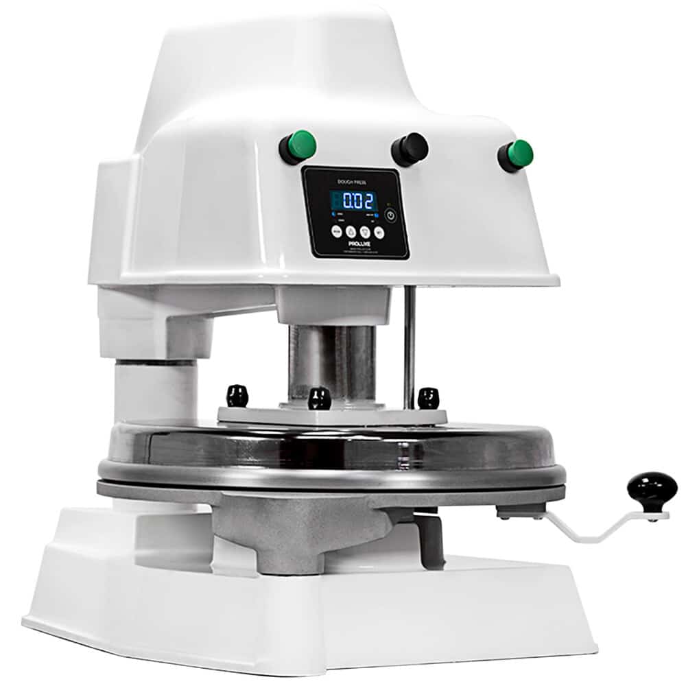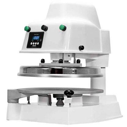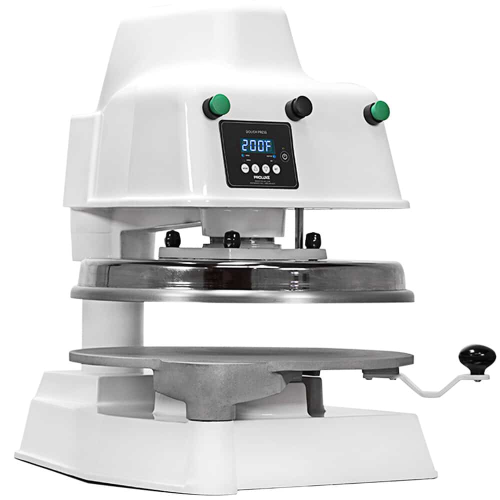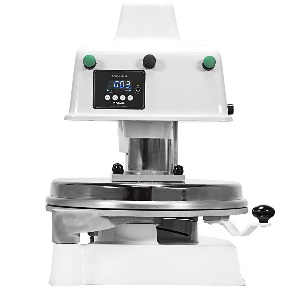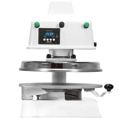 Flatten dough into uniform crusts with the help of this Proluxe Impact X1 DP3300B 18″ automatic electromechanical pizza dough press. This dough press saves you both time and energy thanks to its automatic design. Its dual heated platens work with this unit’s adjustable temperature control to heat to temperatures up to 450 degrees Fahrenheit and press dough to 8″ or 18″ in diameter. A thickness control dial allows you to set how thick the dough should be pressed, so you can press dough for consistently crispy thin crust pizza or even doughy, stuffed crust. To make pressing easier, this unit features a programmable timer to ensure dough is pressed into perfect crust, so you won’t need to rely on skilled labor to create delicious pizza crusts. The embedded heating elements work quickly and efficiently to press dough to your desired thickness, decreasing your bake time without affecting the dough rise.