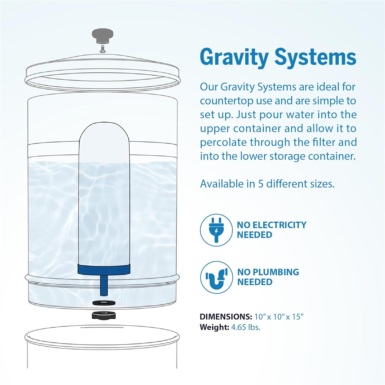 - Sized at 2.75” diameter rather than 2” as with other brands of gravity filters for maximum performance