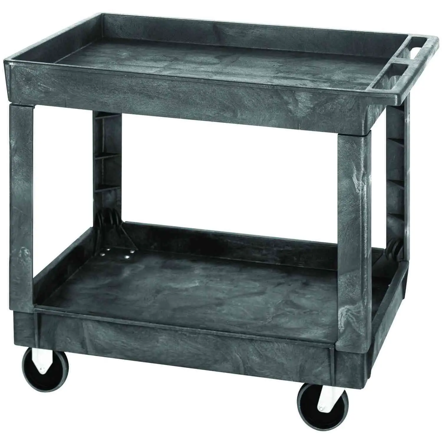 Utility Cart, (2) shelves, 550 lb. capacity, push handle, (4) 5″ casters: (2) rigid and (2) swivel, polymer, gray, shipped KD