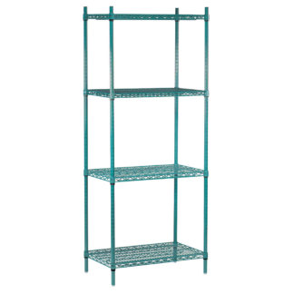 Millenia Shelving Unit, 48″W x 18″D x 74″H, 2000 lbs load capacity, includes: (4) open and (1) solid grid shelves with removable shelf mats and (4) posts, all polymer, rust proof, gray finish, NSF, Made in USA