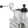 A sturdy metal handle gives you excellent leverage so you can easily push produce through the large hopper while the black pusher does the same for the small hopper, ensuring that operation is as smooth and safe as possible.