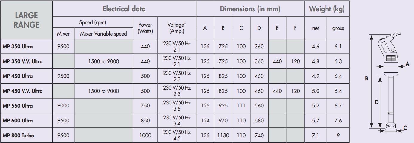 - Stainless steel tube, bell and knife for a longer life (only on MP Ultra models).
