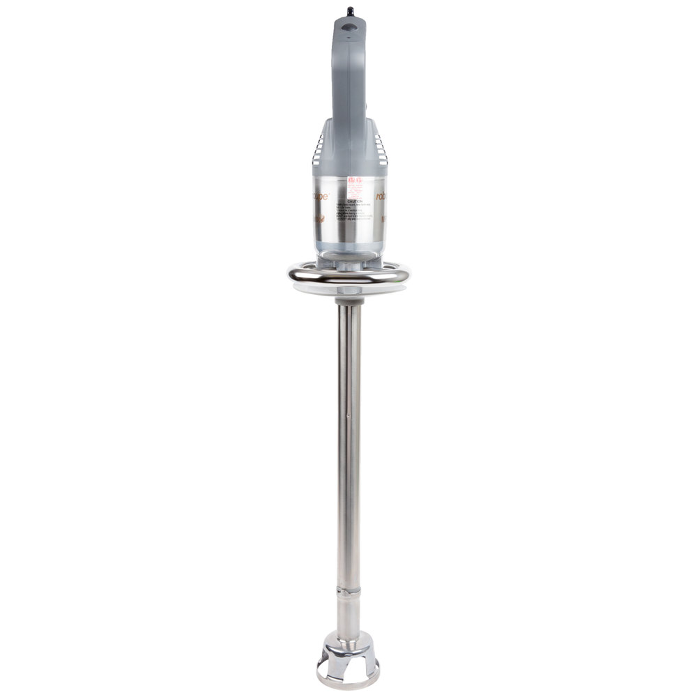 Make short work of chopping, mixing or blending jobs right in the bowl with this immersion blender! Featuring a heavy-duty 1 3/5 hp, 1000W motor that powers up to 12,000 RPMS, this blender ensures long lasting, reliable performance in a commercial establishment. Use this blender to produce perfectly pureed sauces, soups, batters, or even soaps and body butters for hospitality services.