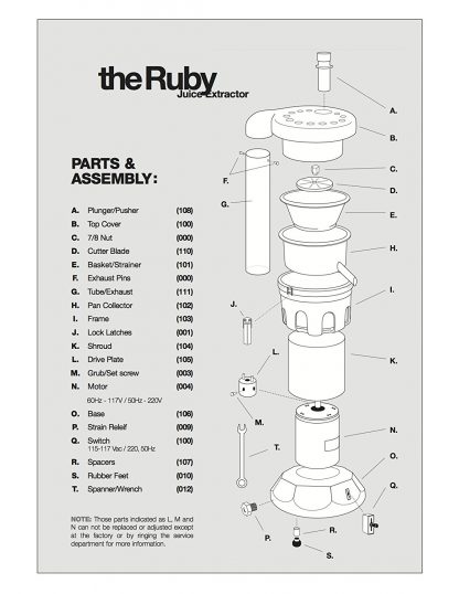 With decades of world wide customer satisfaction, the Ruby 2000 juice extractor produces a continuous supply of fresh, rich, delicious juice from fruit and vegetables. It is capable of producing pulp free juice from apples, celery, carrots, watermelons, honeydew melons, rock melons, cucumber, beetroot, oranges, lemons, grapefruit, etc.