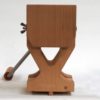 The round, finely crafted shape of the hopper is completely edge-free on the inside. This seamless manufacturing prevents residues of seeds and grains. Hence, contamination is excluded. The hopper base plate forms the transition from the rectangular shape of the uprights to the round shape of the hopper. The hopper unit is attached to the uprights using 4 wooden dowels. For cleaning work on the rollers, the hopper unit can be removed without tools. Furthermore, the hopper base plate covers the front side of the gear cover (child protection). Hopper removal – see operating instructions. - Feed wedge