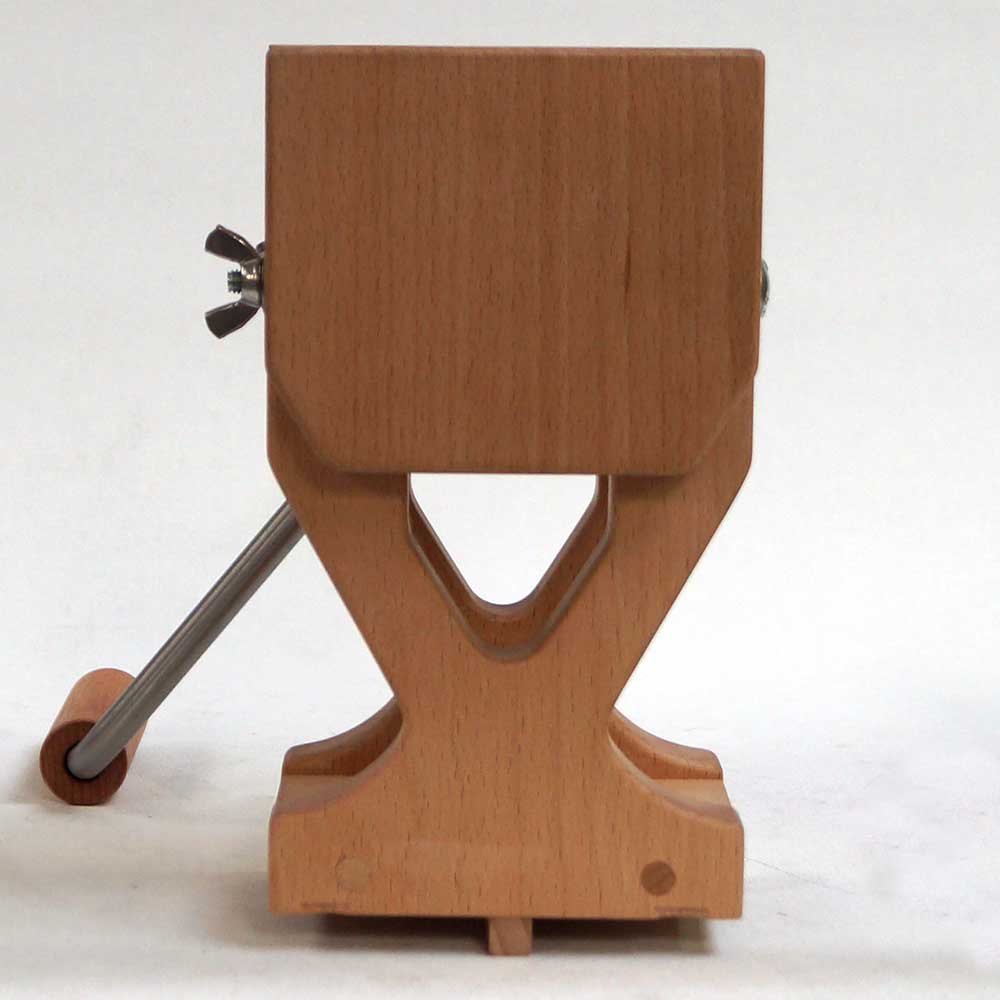 - The crank is made of stainless steel with a handle of beech, oak, or walnut wood.
