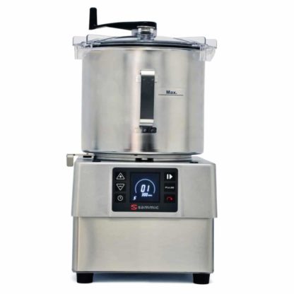 This Sammic KE-8V (1050855) food processor and emulsifier’s 9.4-inch-diameter by 7.8-inch-high stainless steel bowl accommodates 8.5 quarts of product. Its clear lid grants a view of product for improved oversight. Made of robust, rust- and corrosion-resistant stainless steel, it withstands heavy-duty use and can be wiped clean quickly. This lightweight, compact machine measures 11.3 inches wide by 15.2 inches deep by 20.4 inches high to save counterspace.