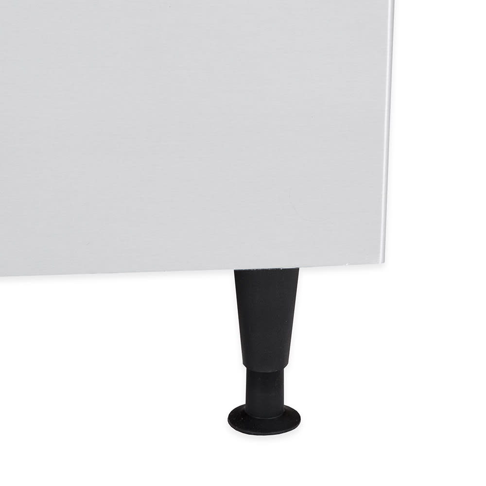 The Scotsman C0330SA-1/B330P head and bin combination has a small footprint, measuring 30.7 inches wide by 34 inches deep. Removable without tools, the baffle ensures ice gets into the bin safely. Interior surfaces of the bin are polyethylene, so they are quick to wipe down. An internal holder keeps the scoop over the ice line, and the door opens with ease since it is spring loaded. Both the bin and head have a corrosion-resistant metallic construction.