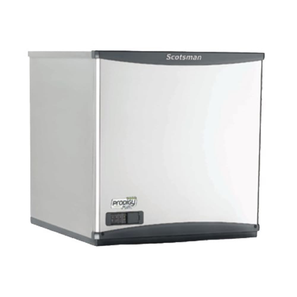 The Scotsman C0522MW-1 ice machine head measures 22 inches wide by 24 inches deep by 23 inches tall, and it’s part of the Prodigy Plus series. This unit produces 480 pounds of full-cube ice every 24 hours, and because the ice maker’s a water-cooled unit, it’s optimal for establishments with a self-contained water system. Meaning it doesn’t require plumbing, the ice machine’s condenser is self-contained, and the unit is made of stainless steel for long-lasting performance.