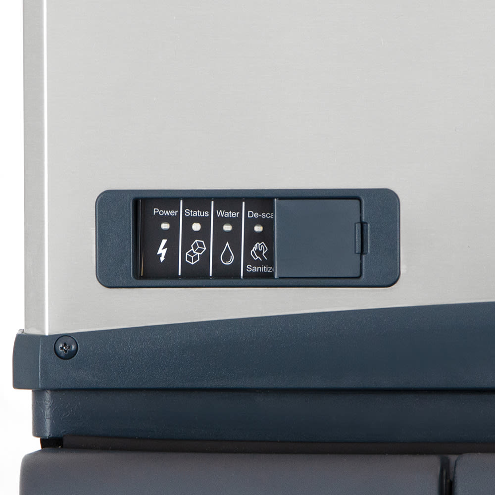 The ice machine can produce up to 776 pounds of ice per day. A WaterSense purge control feature limits the amount of limescale that builds up inside the machine, while an antimicrobial agent slows the growth of bacteria on foodzone components. The machine’s air filter is built into the front so you do not have to worry about clearances on the rear and sides. A front panel easily removes so you can access internal components for preventive maintenance.