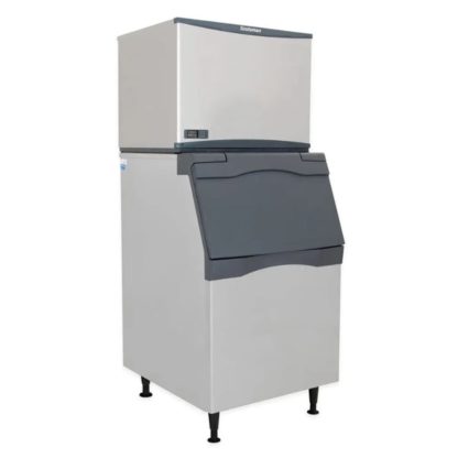 The Scotsman C0722MA-32/B530P full-cube ice maker with bin uses harvest assist to move ice through the machine and into the bin. This bin’s door opens from the front to reveal the polyethylene-lined storage compartment, which holds as much as 536 pounds. The unit is insulated with polyurethane to prevent ice from melting, and ice can be retrieved with a scoop. After users retrieve ice, the scoop can be stored in the built-in holder to keep it clean and accessible.