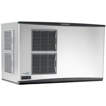 Using R404A refrigerant, the self-contained condenser in the Scotsman C1448SA-3 Prodigy Plus ice machine head is air cooled to make as much as 1,553 pounds of ice per day in ideal environments. If the temperature in the room rises, the unit will make closer to 1,296 pounds of ice daily. When attached to a bin or dispenser, harvest assist will guide the ice through the machine for retrieval when it’s needed. WaterSense purge controls ensure ice stays fresh and clean, and one-touch cleaning reduces the amount of maintenance needed.