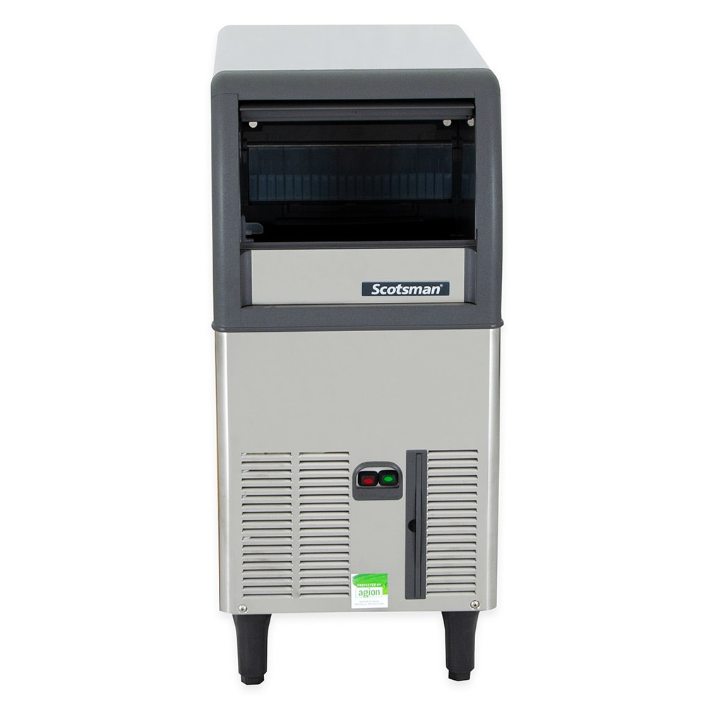 At a maximum rate of 84 pounds per day in ideal conditions, the Scotsman CU0515GA-1 ice maker produces slow-melting gourmet ice, ideal for serving in cocktails. Being a compact undercounter model, its built-in storage capacity is 24 pounds. It’s elevated on 5.25-inch legs so users can clean comfortably beneath the unit. To simplify maintenance, it features a QR code that provides operators with unit-specific information.