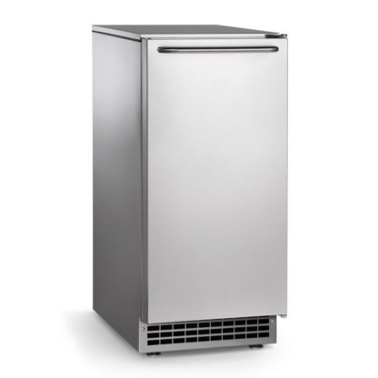 Since it is 15 inches wide, the Scotsman CU50PA-1 undercounter ice machine fits in compact spaces. Its control panel alerts users when cleanings are needed, helping keep ice fresh. Extending the time between cleanings, a water quality sensor detects hard water conditions and helps remove heavy minerals with each harvest cycle. For cleanup, drain water is removed by a 10-inch drain tube through the built-in pump.