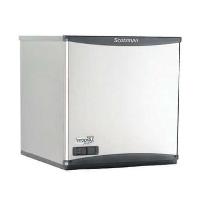 AutoAlert indicator lights located on the front of the Scotsman FS0822R-1 ice maker enable users to monitor and manage operational status. To hinder bacterial growth between standard cleanings, AgION antimicrobial is molded into the key components, while a one-touch cleaning system reduces hands-on tasks to streamline operation. Its front-breathing design doesn’t require a side clearance for flexible installation. Overall, this stainless steel unit measures 22 inches wide by 24 inches deep by 23 inches high and can be installed atop an ice storage bin (sold separately).