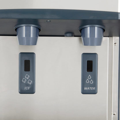 This Scotsman HID525W-1 Meridian ice and water dispenser produces 500 pounds of H2 nugget ice in 24 hours when ambient air is 70 degrees Fahrenheit and incoming water is 50 degrees Fahrenheit. This type of nugget ice melts slowly, dispenses easily, and displaces more liquid than half- or full-size cubes. Its storage bin holds as much as 25 pounds of ice to accommodate high-traffic serving applications and is removable for cleaning. Along with ice, this unit features a SmoothStream system, which releases cool water smoothly to prevent splashing onto nearby surfaces. When its infrared dispensing mechanism detects a cup, the unit expels ice and water beneath the dispensers to help minimize germ spread.