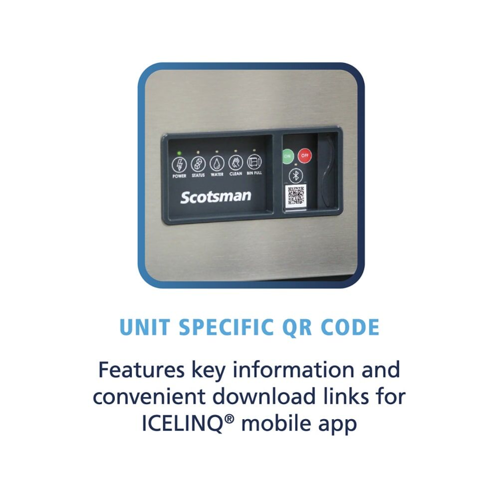 MC0630MA-32 Ice Maker: Prodigy ELITE® Ice Maker, cube style, air-cooled, self-contained condenser, production capacity up to 640 lb/24 hours at 70°/50° (474 lb AHRI certified at 90°/70°), medium cube size, ICELINQ® mobile app, Bluetooth® connectivity, preservation mode, external bin full indicator, AutoAlert™ indicating lights, WaterSense adjustable purge control, one-touch cleaning, harvest assist, front facing removable air filter, unit specific QR code, stainless steel finish, AgION™ antimicrobial protection, 208-230v/60/1-ph, 11.0 amps, cULus, NSF, engineered and assembled in USA; B842S Ice Bin: Ice Bin, top-hinged front-opening door, 778 lb application capacity, for top-mounted ice maker, 42″ width, metallic finish exterior, toolless removable baffle, polyurethane insulation, polyethylene liner, includes 6″ legs, NSF, engineered and assembled in USA; KBT29 Ice Bin Top: Bin Top Kit, for 30″ modular cubers on B842S, BH801 bin