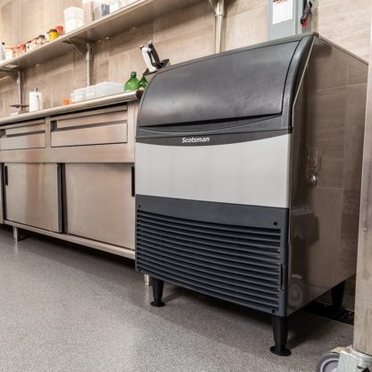 With the Scotsman US2024SA-1 undercounter ice machine, users can produce as much as 227 pounds of ice each day for their bar or restaurant. Its bin accommodates 80 pounds of ice at a time. To scoop ice from the bin, users can push back the ergonomic door.