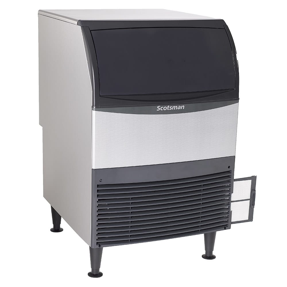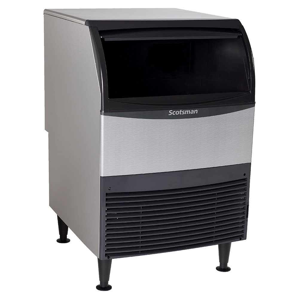 With its production capacity of 282 pounds of half-cube ice daily, the Scotsman US2724SA-1 undercounter ice maker is great for poolside bars or offices that use moderate amounts of ice. Its bin accommodates 80 pounds of ice that users can scoop out through the slide-back door. This unit also includes a set of 6-inch legs.