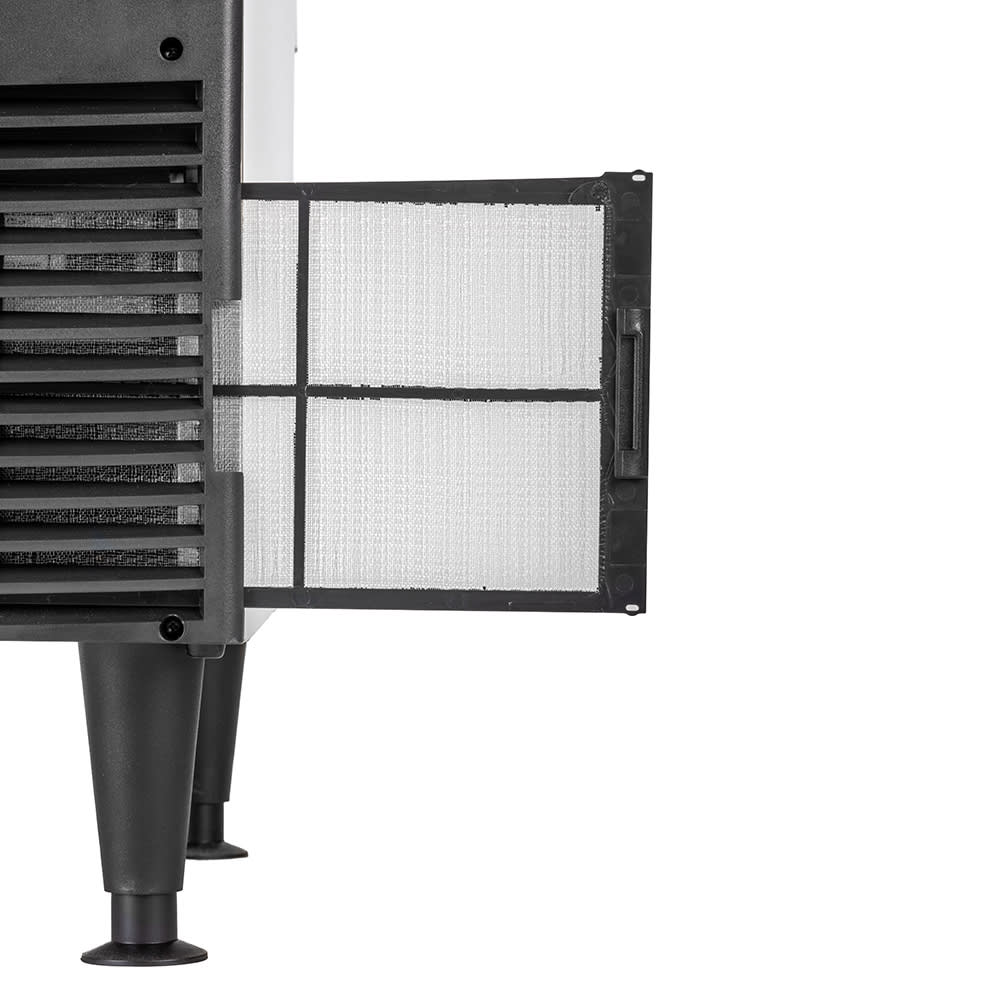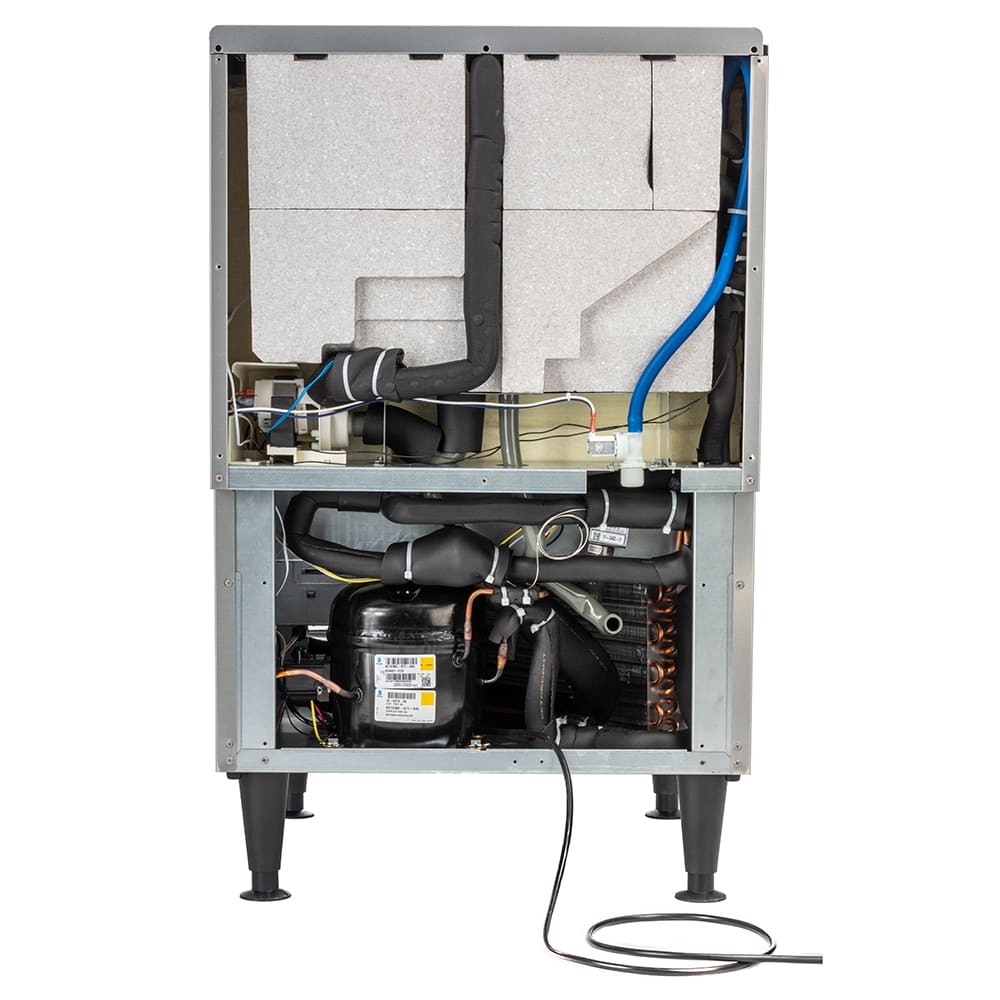 The Scotsman US2724SA-1 undercounter ice maker has a self-contained condenser that uses eco-friendly R-134A refrigerant. Cooled by air, the condenser breathes from the front and doesn’t require side clearance. Its recessed utility chase also enables users to install the unit in tight spaces.