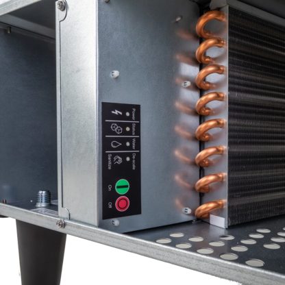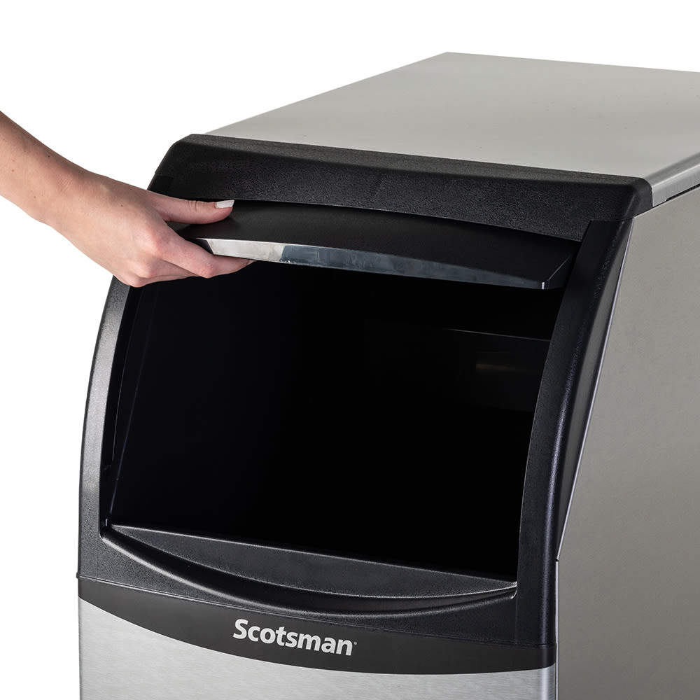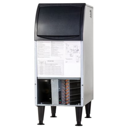 Depending on operating conditions, the Scotsman UF1415A-1 flake undercounter ice maker can produce 142 pounds daily. It makes flake ice, which is often used in healthcare because it minimizes choking risks. After making ice, the unit stores it in its built-in bin, which has a 36-pound capacity and comes with a scoop. The bin’s door has an ergonomic design that slides back and out of the way.
