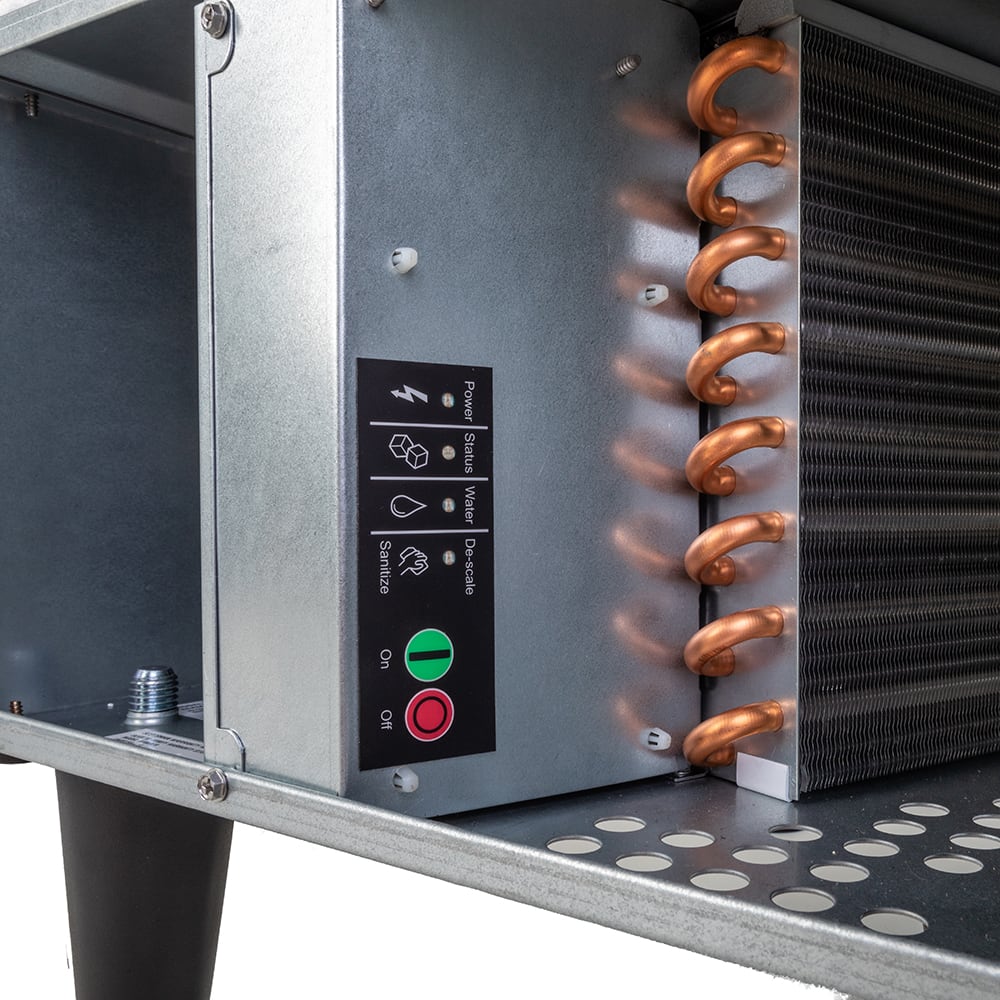 Designed for tight spaces, the Scotsman UF1415A-1 undercounter flake ice machine has a slim footprint, and the unit doesn’t require side clearances since it takes in and expels air from the front. Adjustable legs are included with the unit to maintain stability on uneven floors. If the legs are removed and an optional floor kit is used instead, the unit can fit under ADA-compliant counters. If there is an issue with the unit or an operator just wants more information, they can scan the QR code and be directed to cleaning and servicing manuals or warranty history.