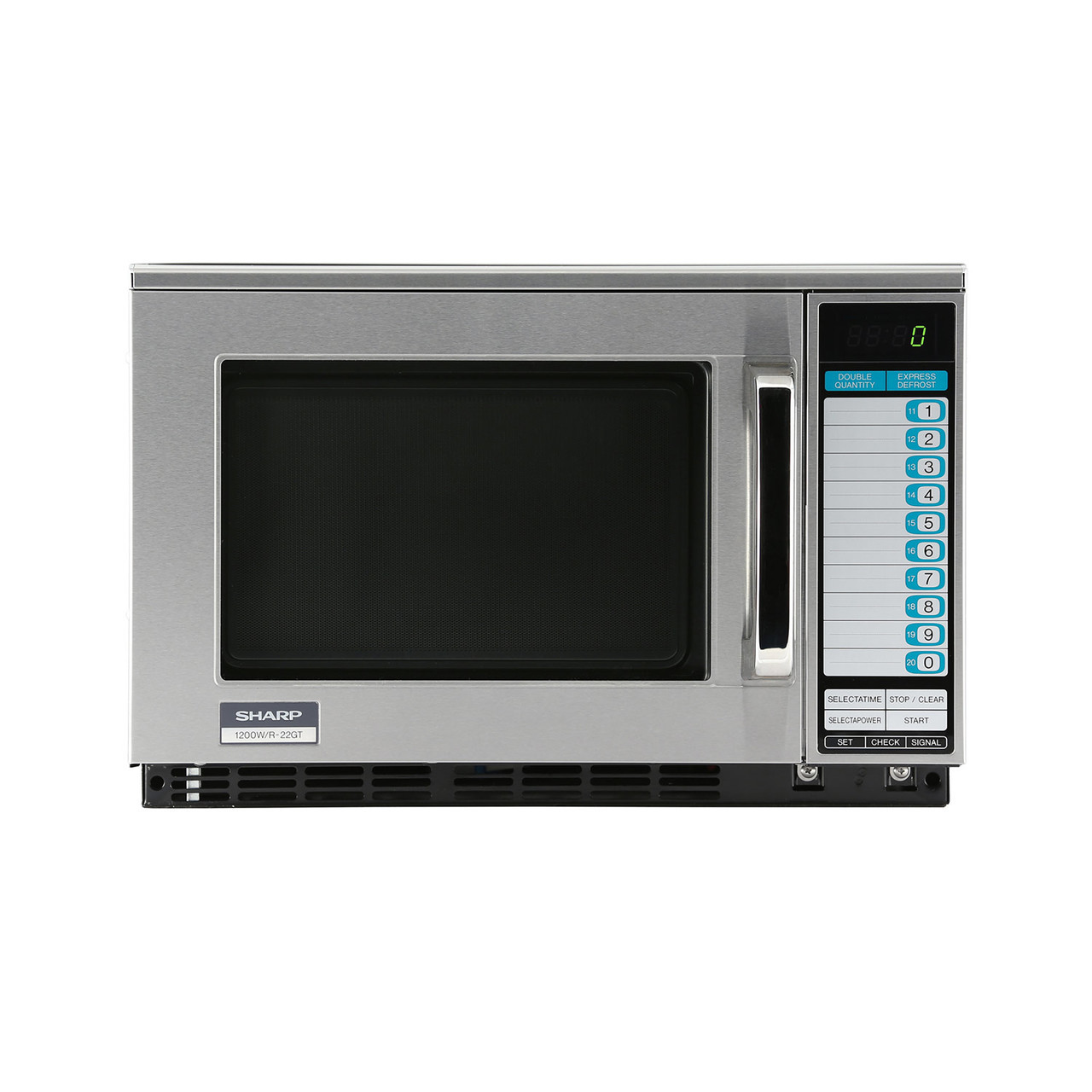 The Sharp R22GTF heavy-duty microwave oven from Sharp is built for volume use and speed cooking. Designed for busy kitchens where speed and efficiency are essential, stackability brings added convenience, while rugged construction equals the exceptional value that’s built to last. The Heavy-Duty series offers a range of wattage output to avoid purchasing units that are over or underpowered. This allows kitchens to be outfitted to specific cooking needs and ultimately keeps electricity costs down.