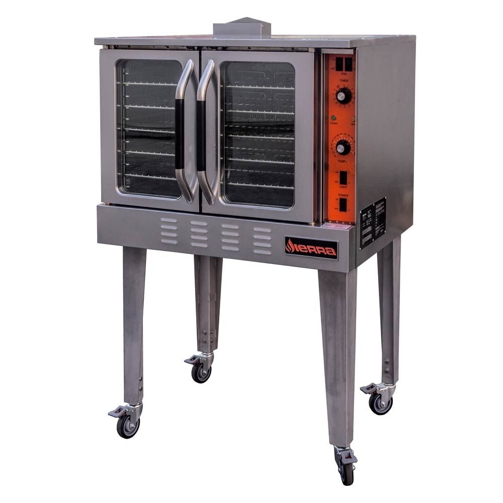 The Sierra Range SRCO-E single electric convection oven has 5 wire racks that can be adjusted along 11 position guides for various product needs and applications. It is controlled via a dial thermostat that is adjustable from 150 to 500 degrees Fahrenheit. With its one-hour timer, this unit has an alarm that alerts users when food is ready, so it won’t burn or overcook. The two-speed fan provides uniform heating throughout the cabinet and has a forced cool-down mode to prevent overheating.