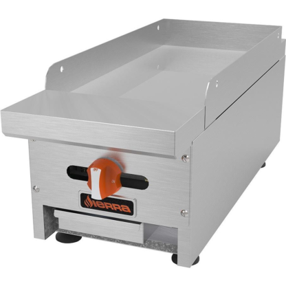 The Sierra SRMG-12 is a 12″ wide professional griddle with 3/4″ thick highly polished steel griddle plates, 1 burner, and 23,000 BTU of total heating power. This manual griddle also features 4″stainless steel adjustable legs, 6″ landing edge for increase plate stability, removable grease tray, and a 2-5/8 wide grease trough for easier cleaning. The rugged stainless steel exterior body is easy to clean and protects the unit from rust and corrosion. What’s more, a stainless steel standing pilot for each flute ensures instant ignition.