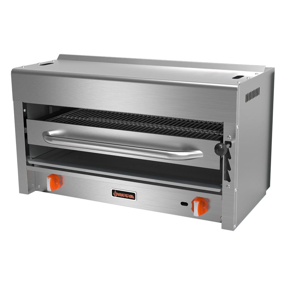 This unit has heavy-duty springs to counterbalance the assembly, with a rack carriage assembly that rolls out for ease of loading and unloading. Because the rack assembly and drip pans are easily removable, this model is easy to clean. If you are looking for a compact and dependable salamander broiler to suit the requirements of your kitchen, the SRS-36 is an excellent product choice.