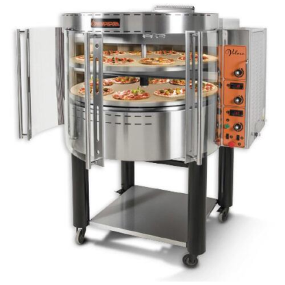 The Sierra VOLARE pizza deck oven is designed to provide superior results while consuming minimum energy. This 50-1/2″ wide model comes with 2 ceramic decks that rotate for even heating. Prepare up to (14) 12-inch pizzas going simultaneously to keep your customers supplied even during busy shifts. Standard features within this model include dual digital temperature display, 3 tempered glass doors, on/off switch controls deck rotation, 3 burners with individual controls, emergency stop button, and a storage shelf on the stand.