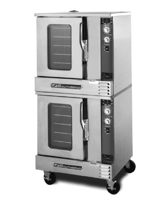 The Southbend GH/20SC double-deck half-size convection oven has a compact footprint and stacked design that save space in crowded kitchens that need to produce a low to medium volume of baked goods. Each deck has separate controls, so users can cook two different dishes at the same time, promoting efficient time management. To enable observation of food as it cooks, the doors have high-efficiency glass windows that resists energy loss and are framed with welded stainless steel for durability.