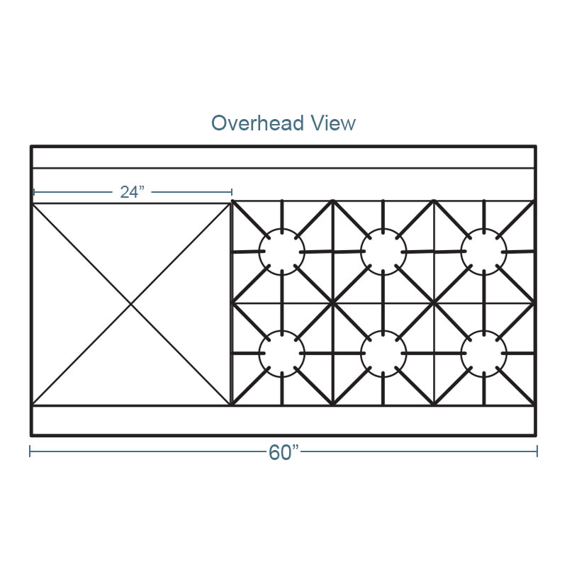 The Southbend S60DD-2TR gas range has a top with six burners and a 24-inch griddle. Burners and removable grates are made of cast iron, and the rear grates accommodate 14-inch-diameter stock pots for preparing large batches of broth, stew, pasta, and other popular dishes. Staff can prepare pancakes, eggs, and more on the griddle plate, while it is 1 inch thick to resist warping from heating up and cooling down.
