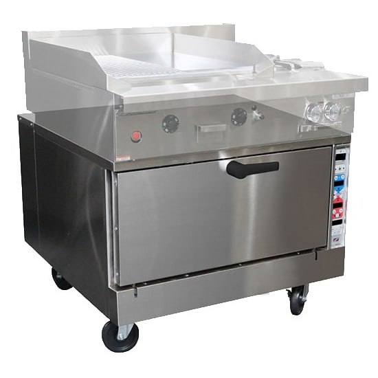 TruVapor Oven, electric, 36″, double deck, cook, steam & combi modes, standard depth, digital controls, self contained steam generator, (3) stainless steel racks, (5) position rack guides, drop down door, stainless steel construction, (2) 1/2 HP, (2) 7.5 kW heating/15 kW steam