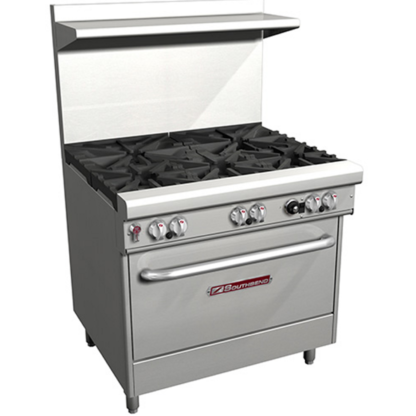 This Southbend ultimate restaurant gas range comes equipped with six non-clog burners and one standard convection oven. The burners have a removable cast iron grate top, which helps spread heat evenly, and features a crumb drawer for easy cleaning. This is a heavy-duty range that fits perfectly in smaller kitchens but versatile enough to cook and boil foods in stockpots up to 14-inch tall. There is also a top stainless steel shelf to store and conveniently access your ingredients or other kitchen tools.