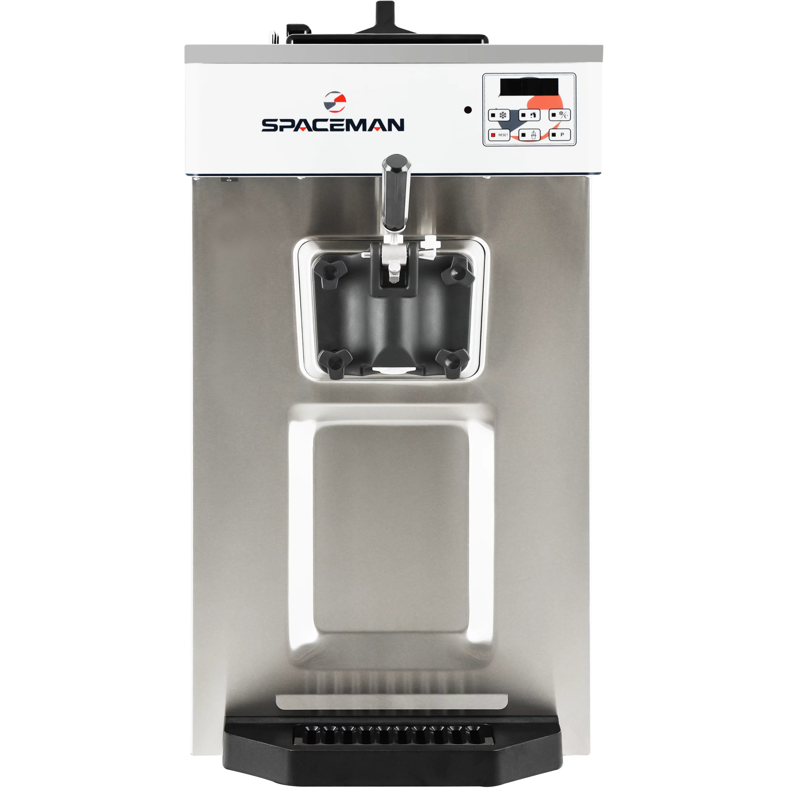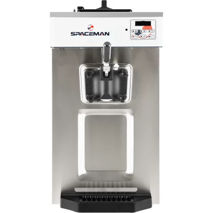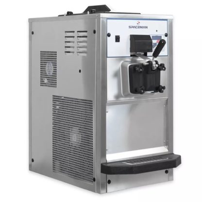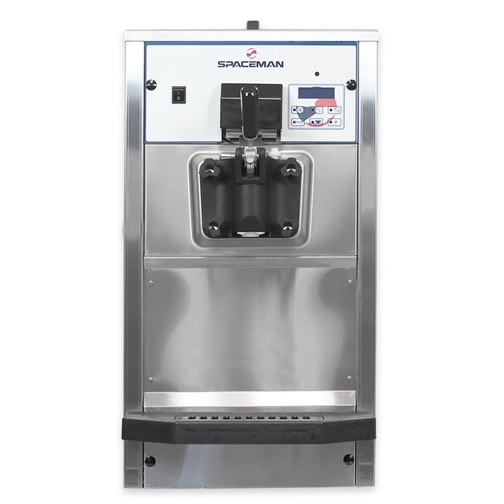 The 6236A-C is a high-volume single flavor countertop, pressurized (air pump) soft serve machine. The 6236A-C will outperform any competitors single flavor countertop machine in initial freeze time, recovery time, and servings per hour and is ideal for high volume operations with servings up to 12oz. Capable of producing a variety of soft serve products including ice cream, frozen yogurt, custards, and sorbets. Easy to use digital user interface and control system maintains excellent product consistency, hopper temperature, and high-performance parameters. Hopper refrigeration and sleep/standby feature keep product fresh and is approved for dairy or non-dairy products. The Spaceman air pump system allows you to choose between six overrun settings, giving you the ability to add even more air to the product, yielding higher profits, creamier, fluffier, and lighter product. Add an air pump anytime you wish to dip cones, swirl extra high, or get that light Instagram famous look! Hopper agitators stir product throughout the day, saving operator time and ensuring consistent dairy safe cooling in the hopper. Patented freezing technology on the 3.4qt cylinders means a super-fast recovery time, capable of producing over 350 4oz servings per hour.